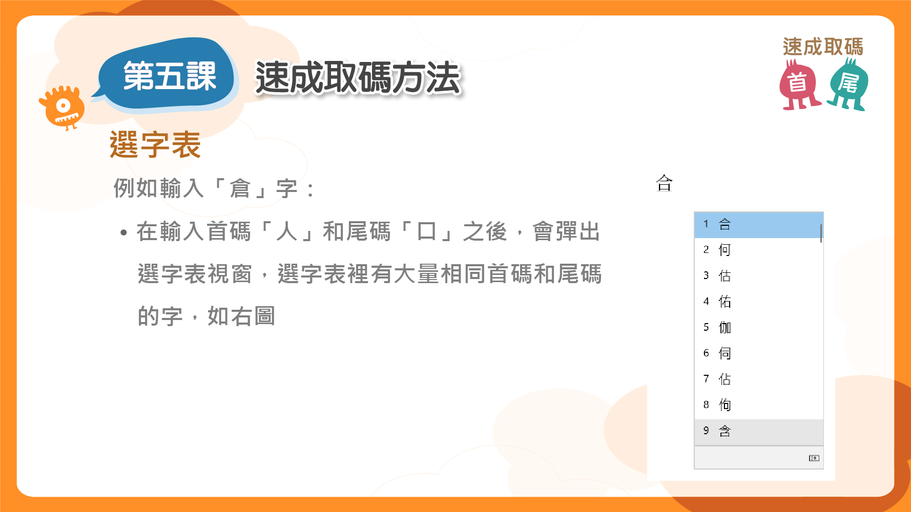 輸入練習(輔助字形)